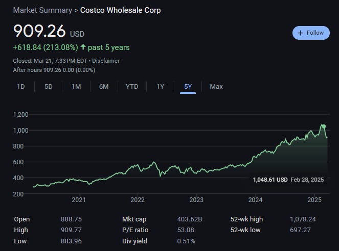With this premise, let’s look just at Costco today.